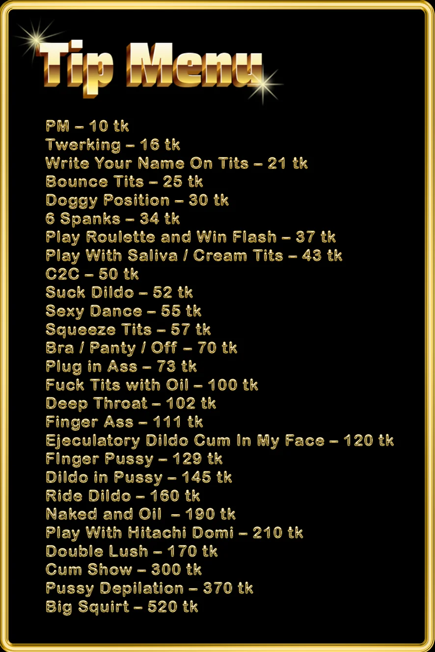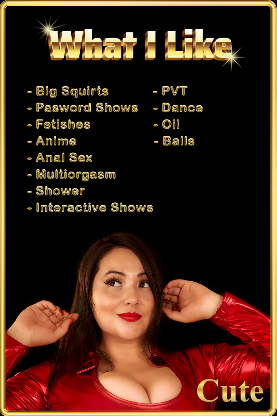 Olejová šou, Orál, Hore bez, Erotický tanec, Sexuálne hračky, Foot fetiš, Varenie, Latex, Vonku, Anál, Striekanie, Sprcha, Ahegao, Hlboký orál, Análne hračky, Masturbácia, Plieskanie po zadku, Dildo alebo vibrátor, Prstovanie, Striptíz, Výstrek na tvár, Hračky na bradavky, Twerk, V kancelárii, Dusenie, Medzi kozy, Orgazmus