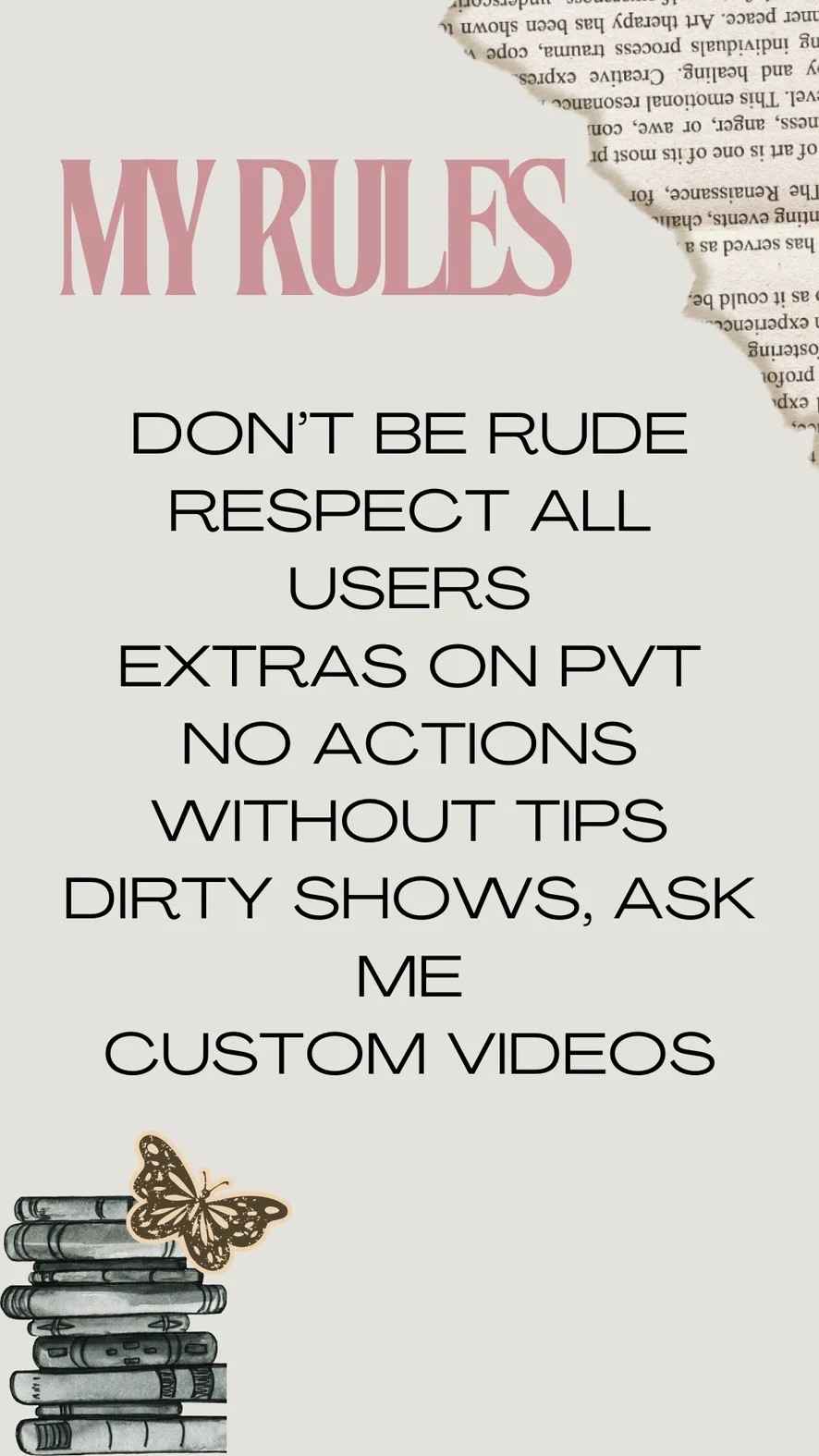 Odzadu, Ahegao, Plieskanie po zadku, Erotický tanec, Zárez, Hodnotenie vtáka, Prstovanie, Výstrek na tvár, Nylon, Joga, Hore bez, Mamada 55tks, Creampie, Striptíz, Sedenie na tvári, Foot fetiš, Exhibicionizmus, Pohľad pod sukňu, Twerk, Podpätky, Hardcore, Orgazmus, Dusenie, Medzi kozy, Masturbácia, Pokyny na honenie, Squirting 350tks, cum in face 666tks, show saliva in face 333tks, Anal 540tks, Garganta Profunda 111tks, Dildo alebo vibrátor, Výstrek, Ponižovanie, Sexuálne hračky, Hračky na bradavky, Orál, Masáž, Footjob, Olejová šou, Jazdenie