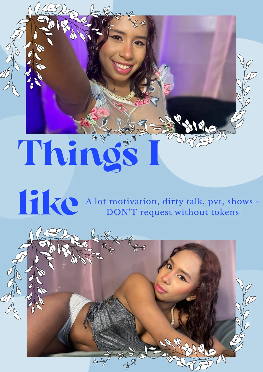Erotický tanec, Zárez, Striptíz, Hlboký orál, Prstovanie, Nylon, Ahegao, Orál, Exhibicionizmus, Medzi kozy, Podpätky, Hardcore, Foot fetiš, Hore bez, Odzadu, Plieskanie po zadku, Sprosté reči, Sexuálne hračky, Olejová šou, Twerk, Hodnotenie vtáka, Creampie, Orgazmus, Sedenie na tvári, Ponižovanie, Gape, Honenie, Footjob, Masturbácia, Koža, Dildo alebo vibrátor, Hračky na bradavky, Roleplay, Pokyny na honenie, Dusenie, Joga, Striekanie, Dvojitá penetrácia, Zo zadku do úst, Fisting, Análne hračky, Anál, Jazdenie