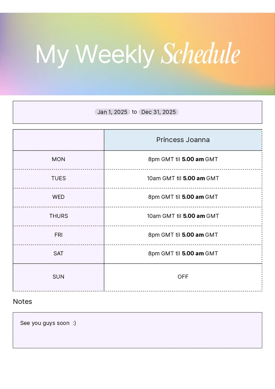 My schedule
